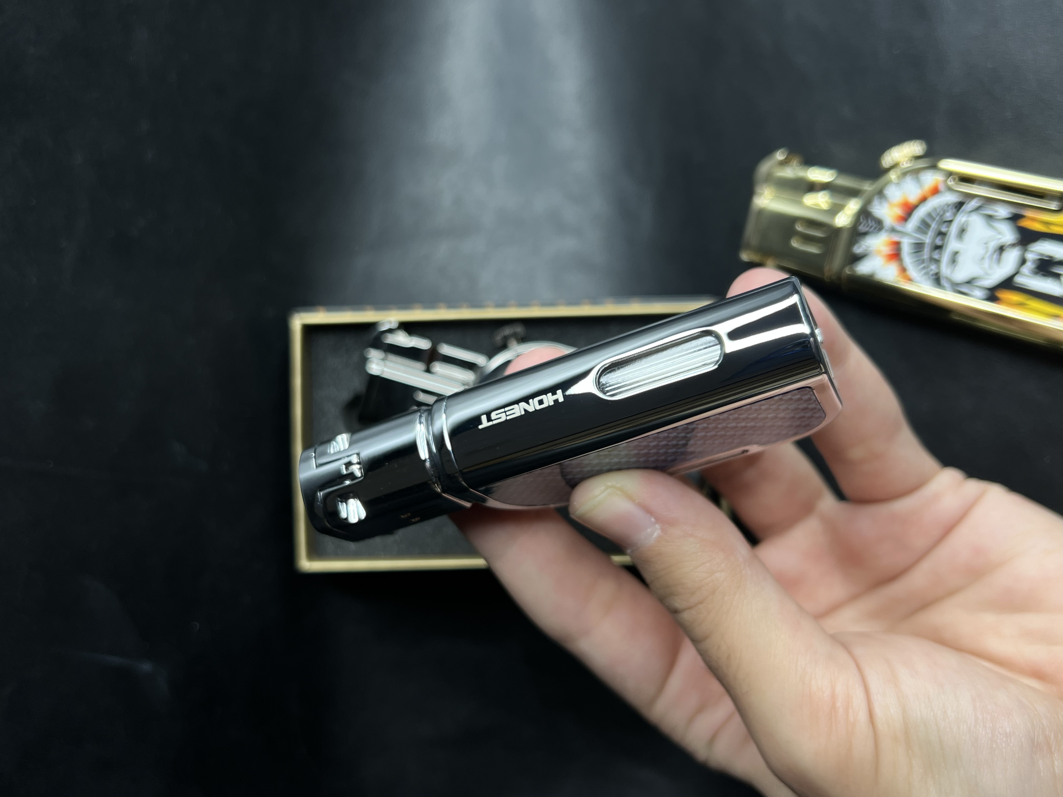 فندک ۲ حالته از برند هانست ، مناسب استفادهی روزمره ، وزن متوسط و اندازهی مناسب حمل ساده داخل جیب ، کیفیت بسیار بالا ، قابلیت شارژ مجدد گاز ، جنس بدنه استیل ، شعله ساده و اتمی ، جعبهی زیبا مناسب هدیه دادن ، دارای ابزار مناسب استفاده سیگار برگ