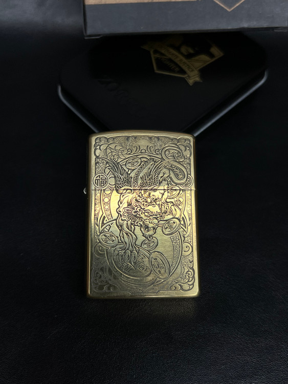 فندک طرح اژدها حکاکی شده از برند زورو ، دارای صدای درب ۳ بعدی ، مناسب استفادهی روزمره ، وزن سنگین و اندازهی مناسب حمل ساده داخل جیب ، کیفیت بسیار بالا ، قابلیت شارژ مجدد بنزین ، جنس بدنه استیل ، شعله ساده ، مقاومت بالا در برابر باد ، شناسنامه دار ، رنگ ثابت ، جعبهی مخصوص به برند زورو