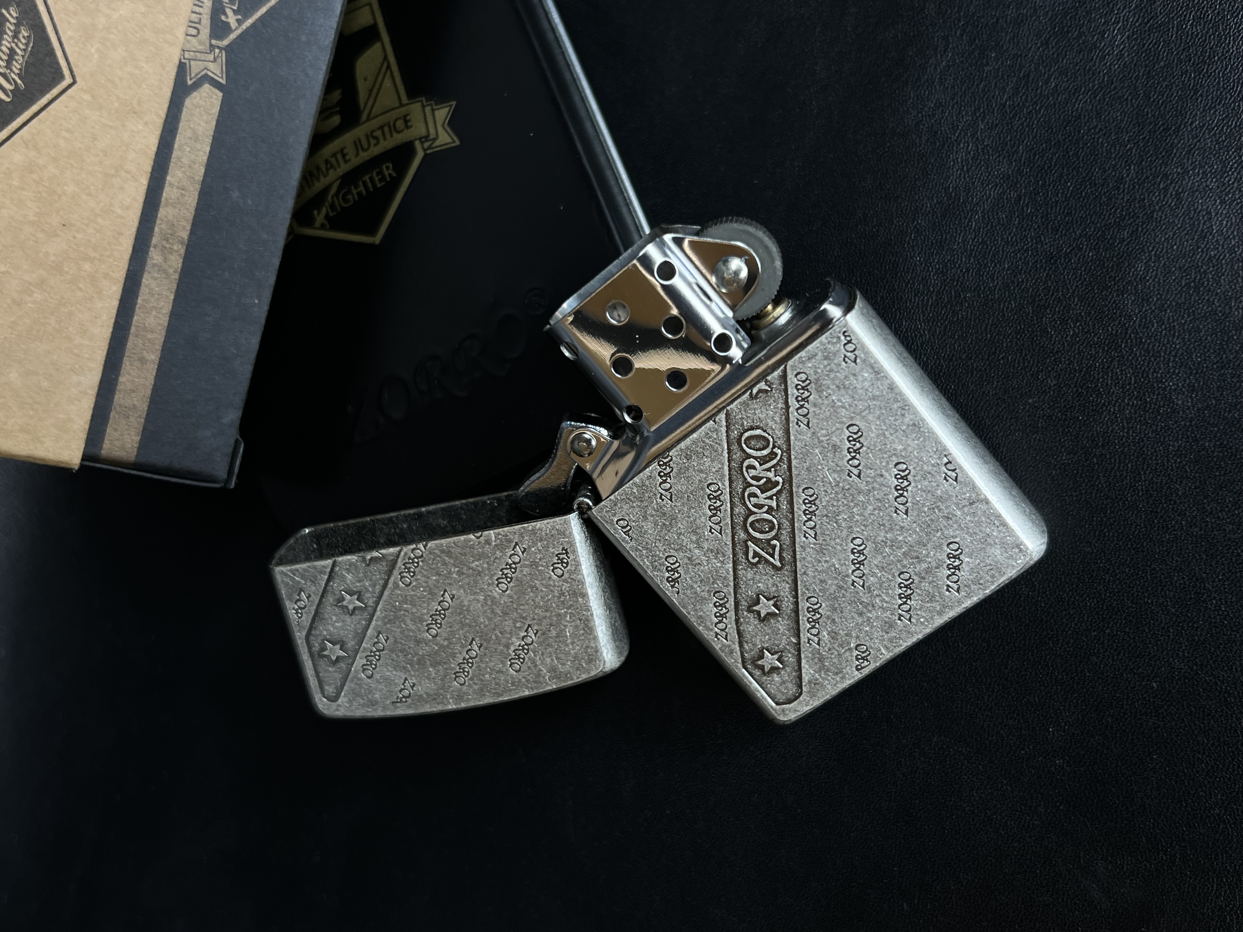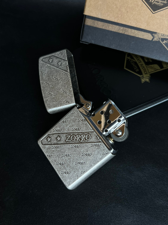 فندک طرح ستاره حکاکی شده از برند زورو ، دارای صدای درب ۳ بعدی ، مناسب استفادهی روزمره ، وزن سنگین و اندازهی مناسب حمل ساده داخل جیب ، کیفیت بسیار بالا ، قابلیت شارژ مجدد بنزین ، جنس بدنه استیل ، شعله ساده ، مقاومت بالا در برابر باد ، شناسنامه دار ، رنگ ثابت ، جعبهی مخصوص به برند زورو
