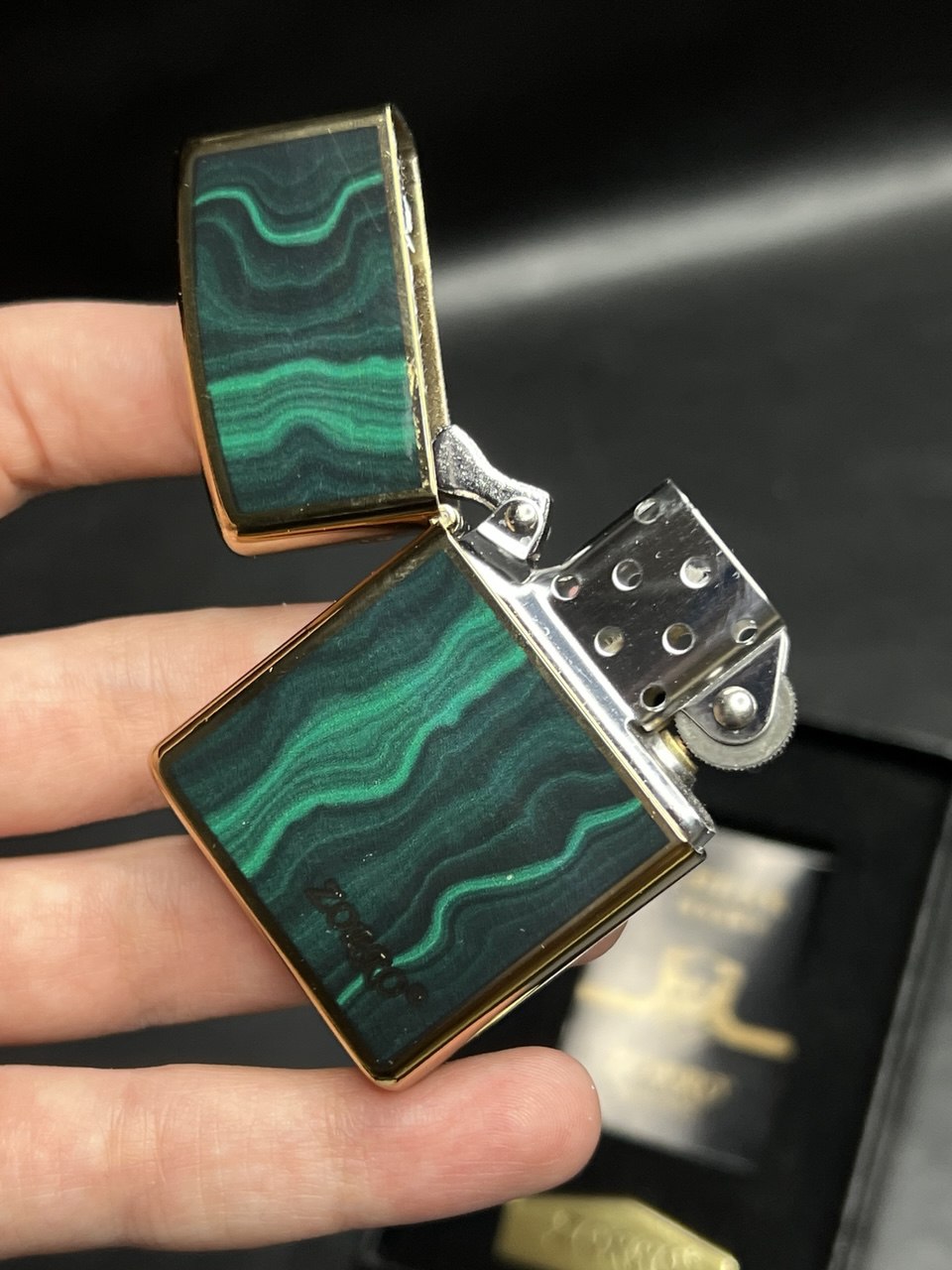 فندک طرح روکش صدف سبز طبیعی دو طرفه ، دارای صدای درب ۳ بعدی ، مناسب استفادهی روزمره ، وزن سنگین و اندازهی مناسب حمل ساده داخل جیب ، کیفیت بسیار بالا ، قابلیت شارژ مجدد بنزین ، جنس بدنه استیل ، شعله ساده ، مقاومت بالا در برابر باد ، شناسنامه دار ، رنگ ثابت ، جعبهی مخصوص به برند زورو . تولید محدود 5000 عددی
