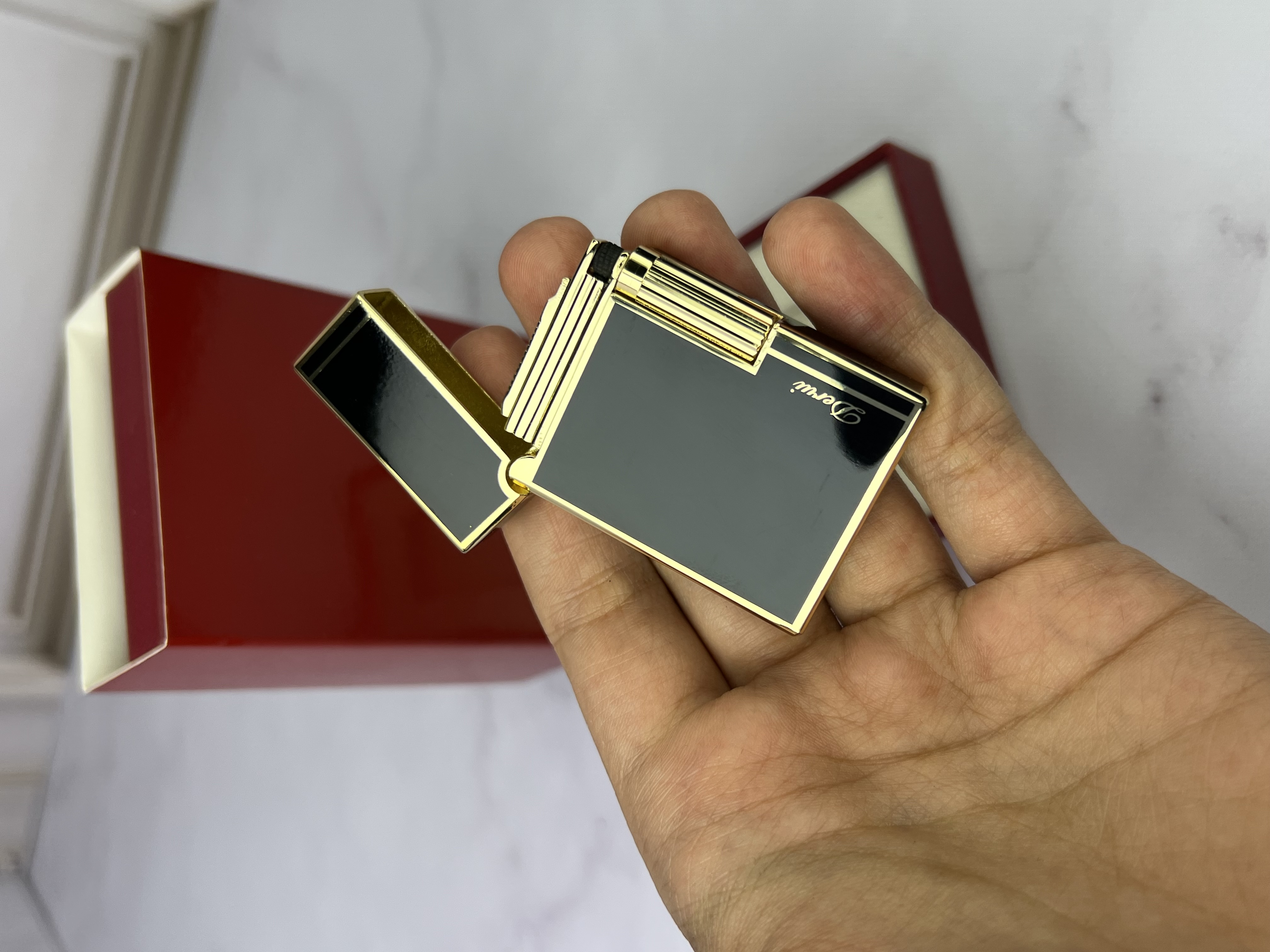 فندک برند طرح مشکی خط دار از برند دروی ، مناسب استفادهی روزمره ، وزن متوسط و اندازهی مناسب حمل ساده داخل جیب ، کیفیت بسیار بالا ، قابلیت شارژ مجدد گاز ، جنس بدنه استیل ، شعله ساده ، جعبهی زیبا مناسب هدیه دادن