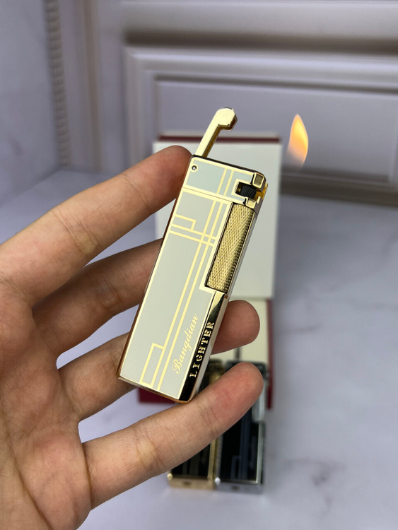 فندک سنگ از بغل از برند باندن ، مناسب استفادهی روزمره ، وزن متوسط و اندازهی مناسب حمل ساده داخل جیب ، کیفیت بسیار بالا ، قابلیت شارژ مجدد گاز ، جنس بدنه استیل ، شعله ساده ، جعبهی زیبا مناسب هدیه دادن ، شعله کج مناسب استفاده برای پیپ