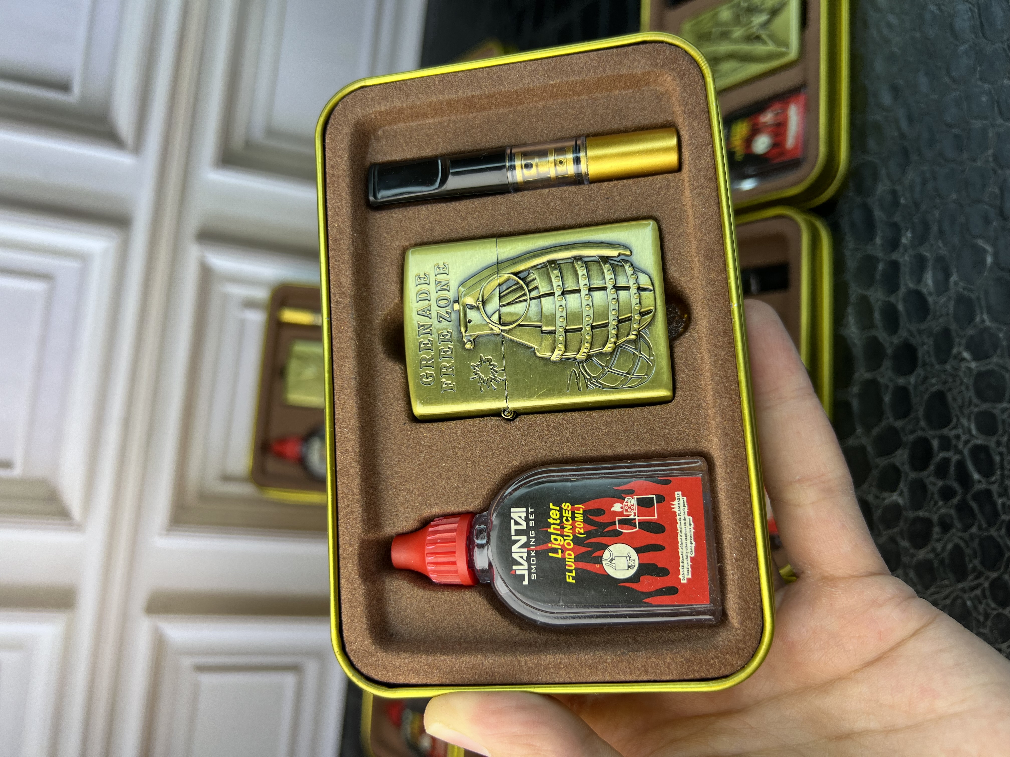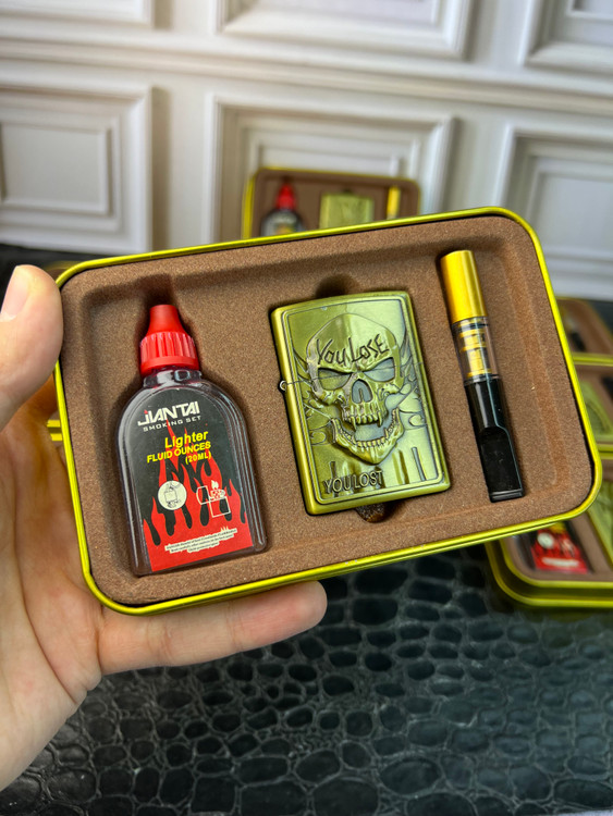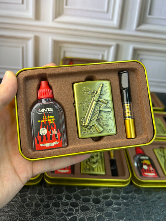 باکس هدیه بنزینی ۳ تیکه ، بنزین فندک و فندک بنزینی و چوب سیگار ، مناسب استفادهی روزمره ، شعله ساده ، وزن متوسط ، جعبهی مناسب هدیه ، کیفیت بالا ، قابلیت شارژ مجدد بنزین ، نگهداری بنزین بالا ، جنس بدنه استیل ، رنگ ثابت
