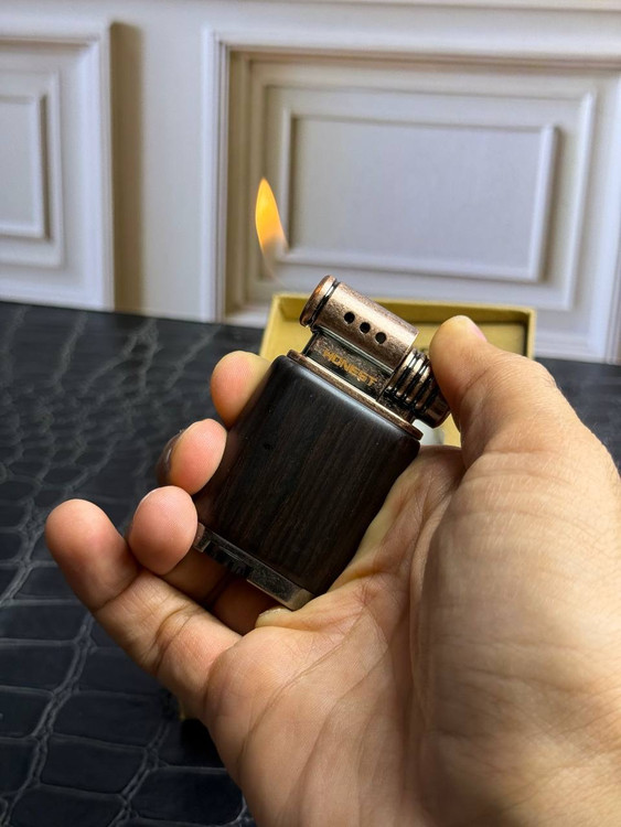 فندک چوبی از برند هانست ، مناسب استفادهی روزمره ، مناسب استفاده برای پیپ ، وزن متوسط و اندازهی مناسب حمل ساده داخل جیب ، کیفیت بسیار بالا ، قابلیت شارژ مجدد گاز ، جنس بدنه استیل و چوب ، شعله ساده ، جعبهی زیبا مناسب هدیه دادن ، شناسنامه دار ،