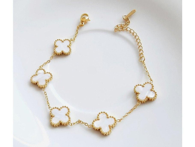 دستبند 5 گل استیل ون کلیف . رنگ ثابت و ضد حساسیت و مناسب هدیه و استفاده روزمره