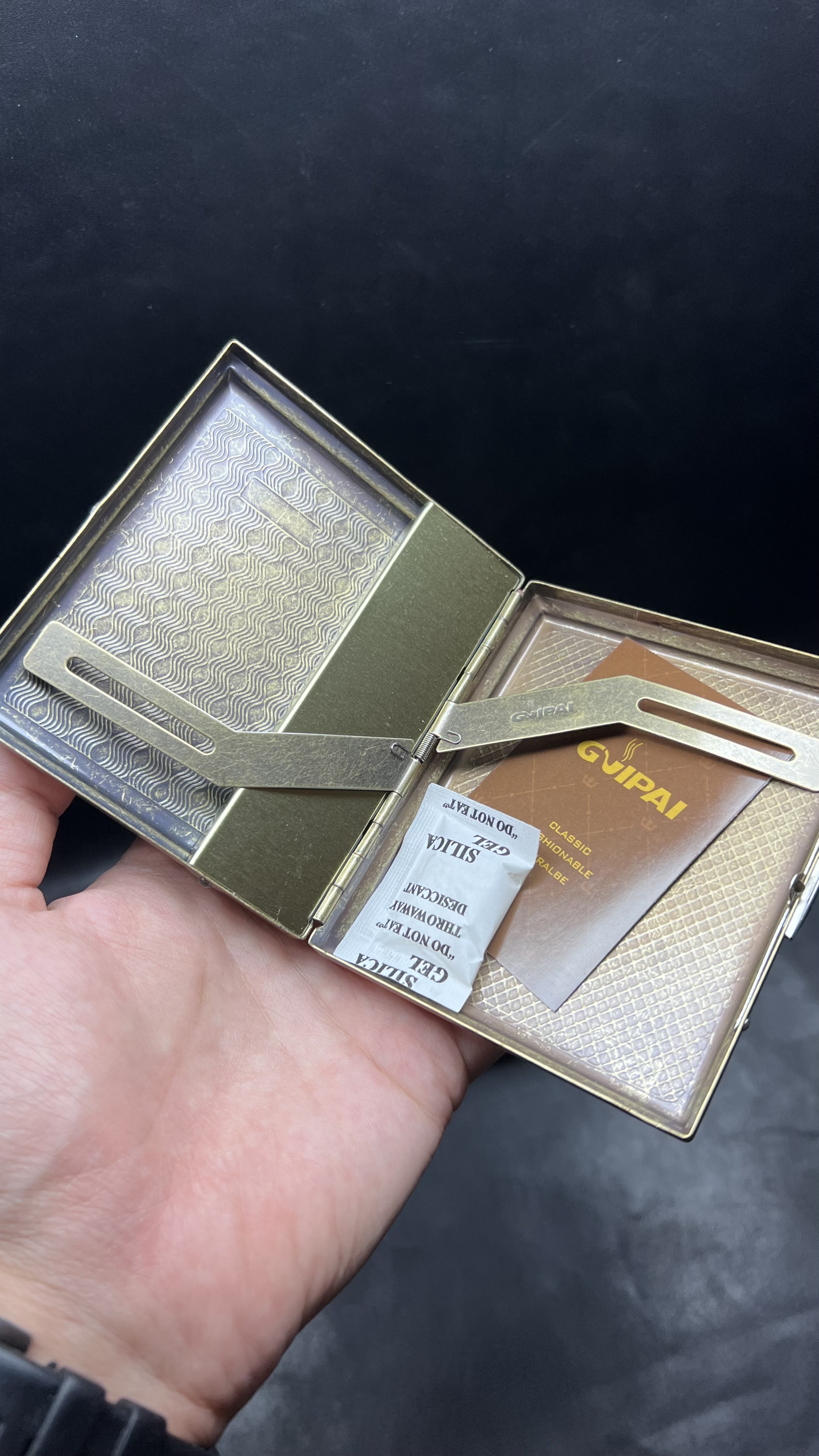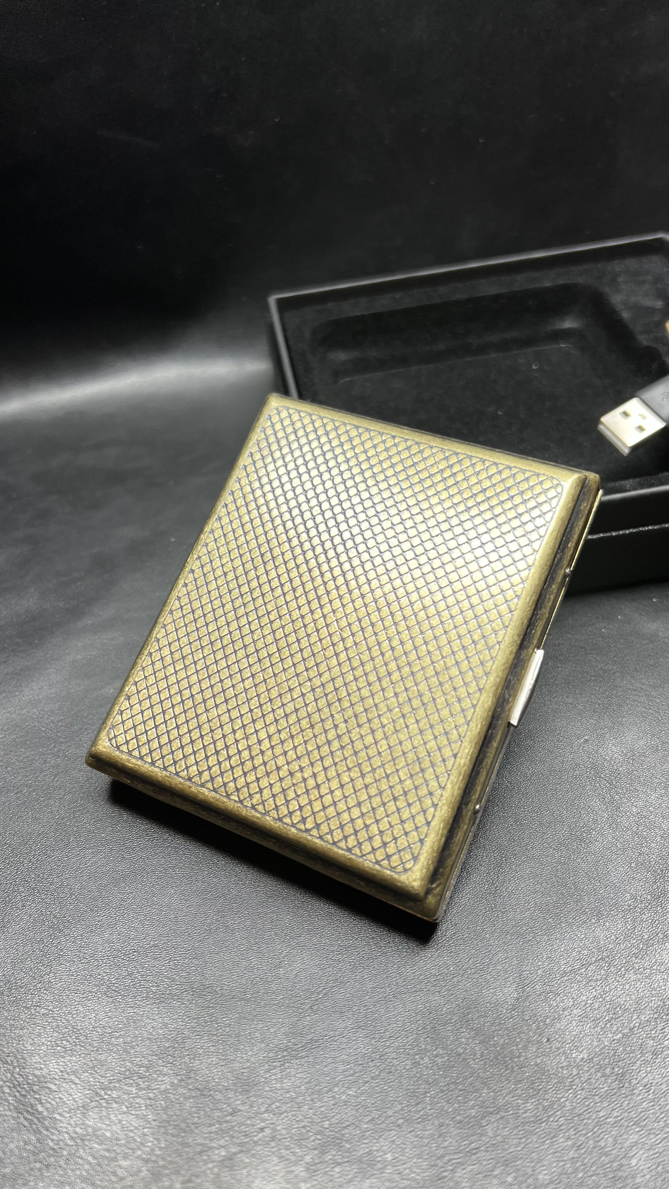جاسیگاری طرح اجری فندک دار (کیف سیگار) برند گوپای مناسب برای همه نوع سیگار جز پایه بلند ، فندک المنتی قابل شارژ ، جنس بدنه برنجی ، رنگ ثابت ، شناسنامه دار ، کیفیت بسیار بالا ، جعبهی مخصوص به خود برند گوپای ، دارای کابل شارژ