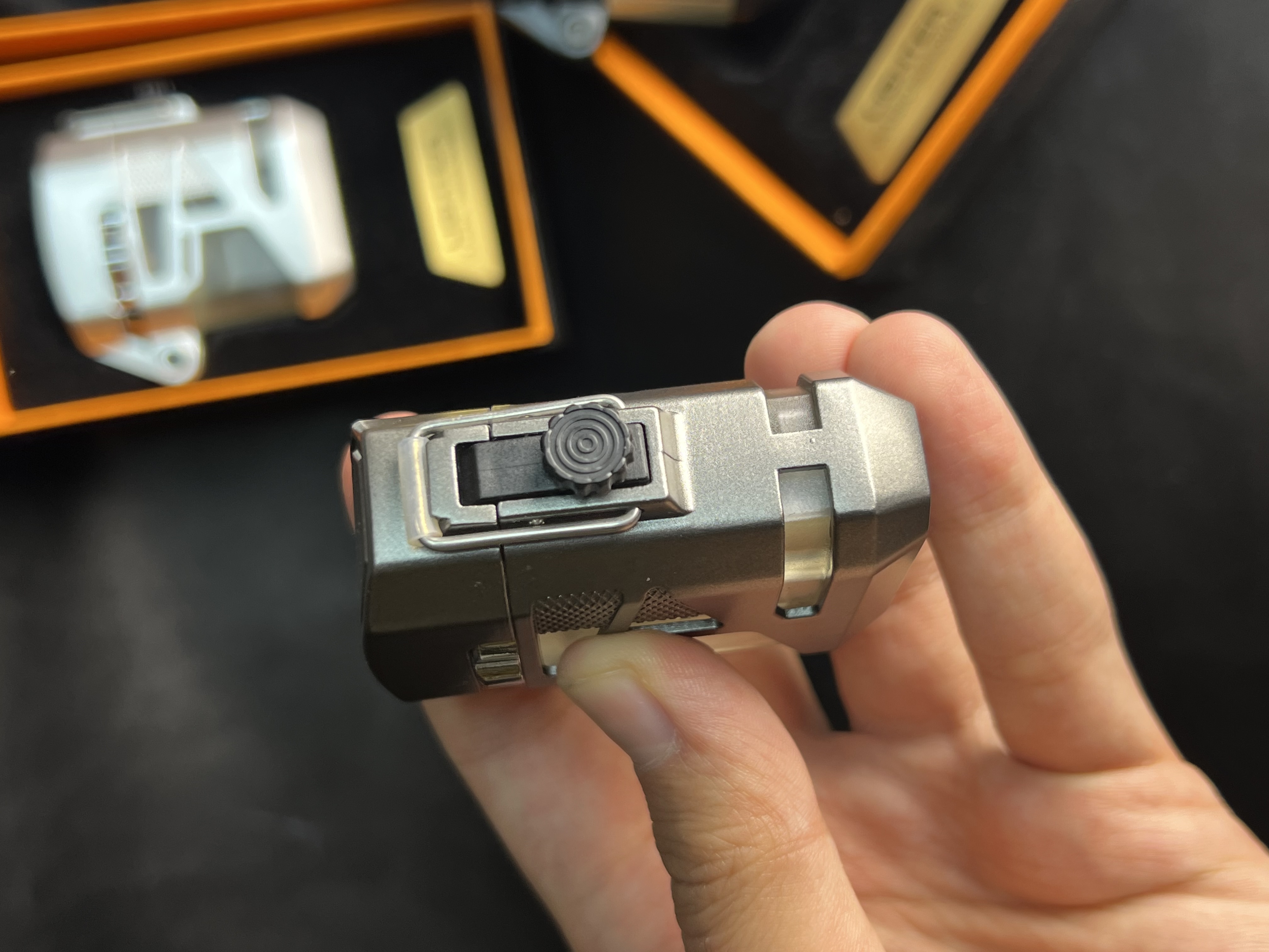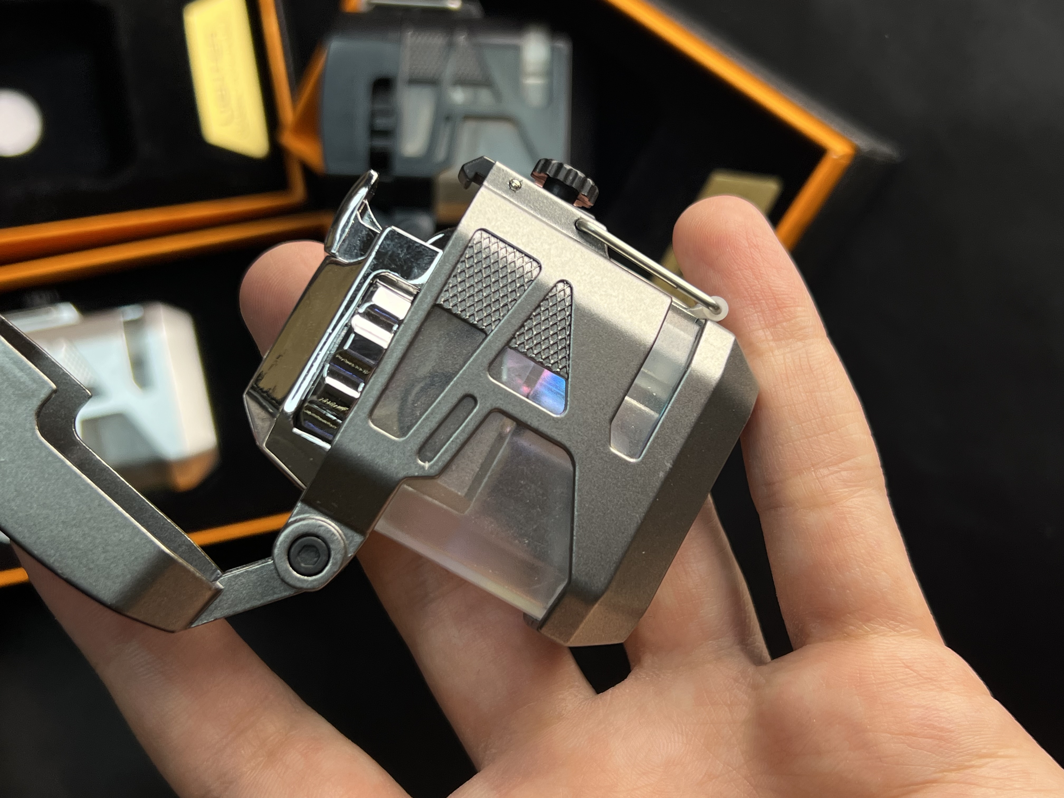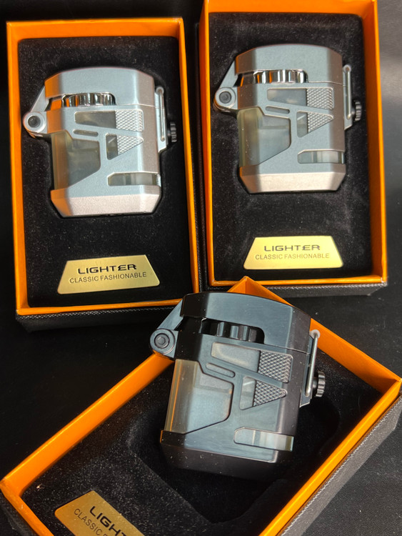 فندک مخزین شیشهای از برند لایتر ، مناسب استفادهی روزمره ، شعله اتمی ، شعله قرمز ، وزن سنگین و اندازهی مناسب حمل ساده داخل جیب ، جعبهی مناسب هدیه ، کیفیت بالا ، قابلیت شارژ مجدد گاز ، جنس بدنه استیل ، رنگ ثابت ، شناسنامه دار ، اسپینر دار
