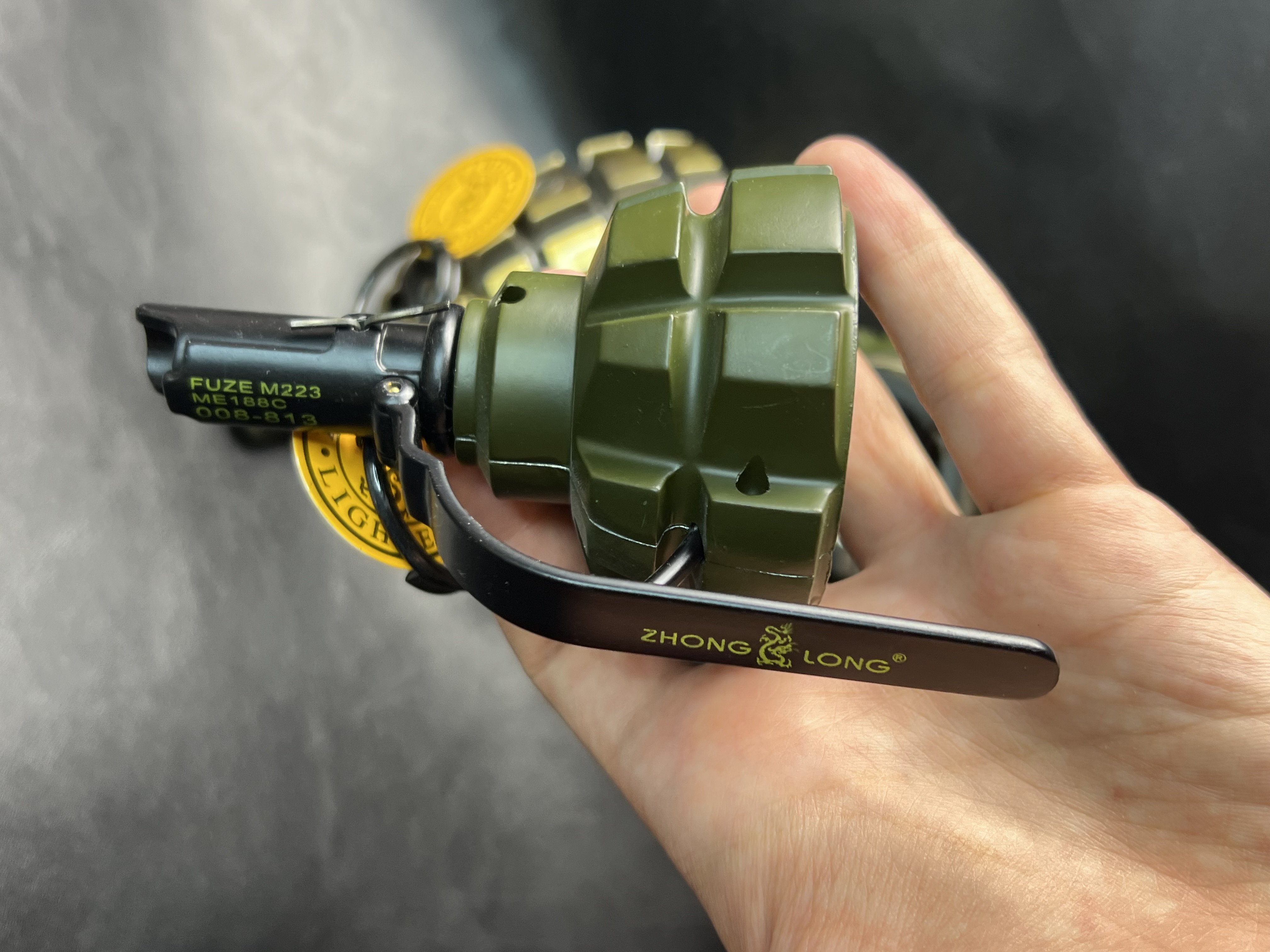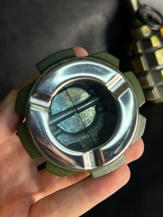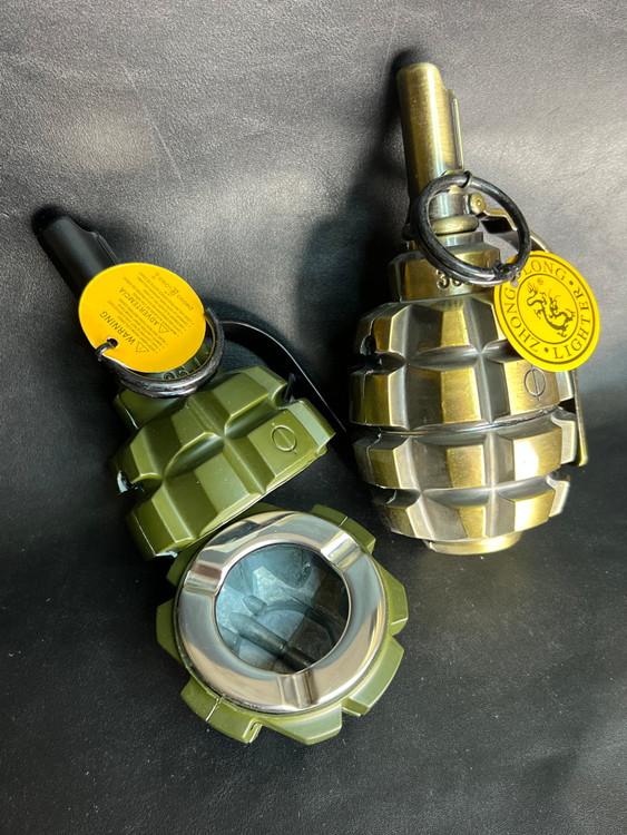 فندک و زیر سیگاری طرح نارنجک از برند zhong long ، مناسب استفادهی رو میزی ، شعله اتمی ، شعله قرمز ، وزن سنگین و اندازهی مناسب استفادهی رو میزی ، جعبهی مناسب هدیه ، کیفیت بالا ، قابلیت شارژ مجدد گاز ، جنس بدنه استیل ، رنگ ثابت ، شناسنامه دار ، داخل زیر سیگاری کاملا استیل ، قابل شستشو