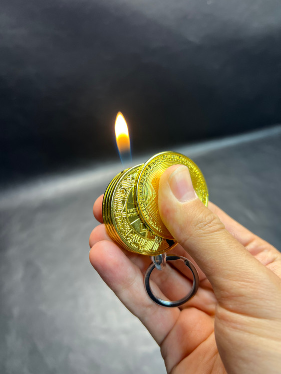 فندک طرح بیتکوین ، مناسب استفادهی روزمره ، فندک مخفی ، وزن سبک و اندازهی مناسب حمل ساده داخل جیب ، کیفیت بالا ، قابلیت شارژ مجدد گاز ، جنس بدنه پلاستیک مقاوم